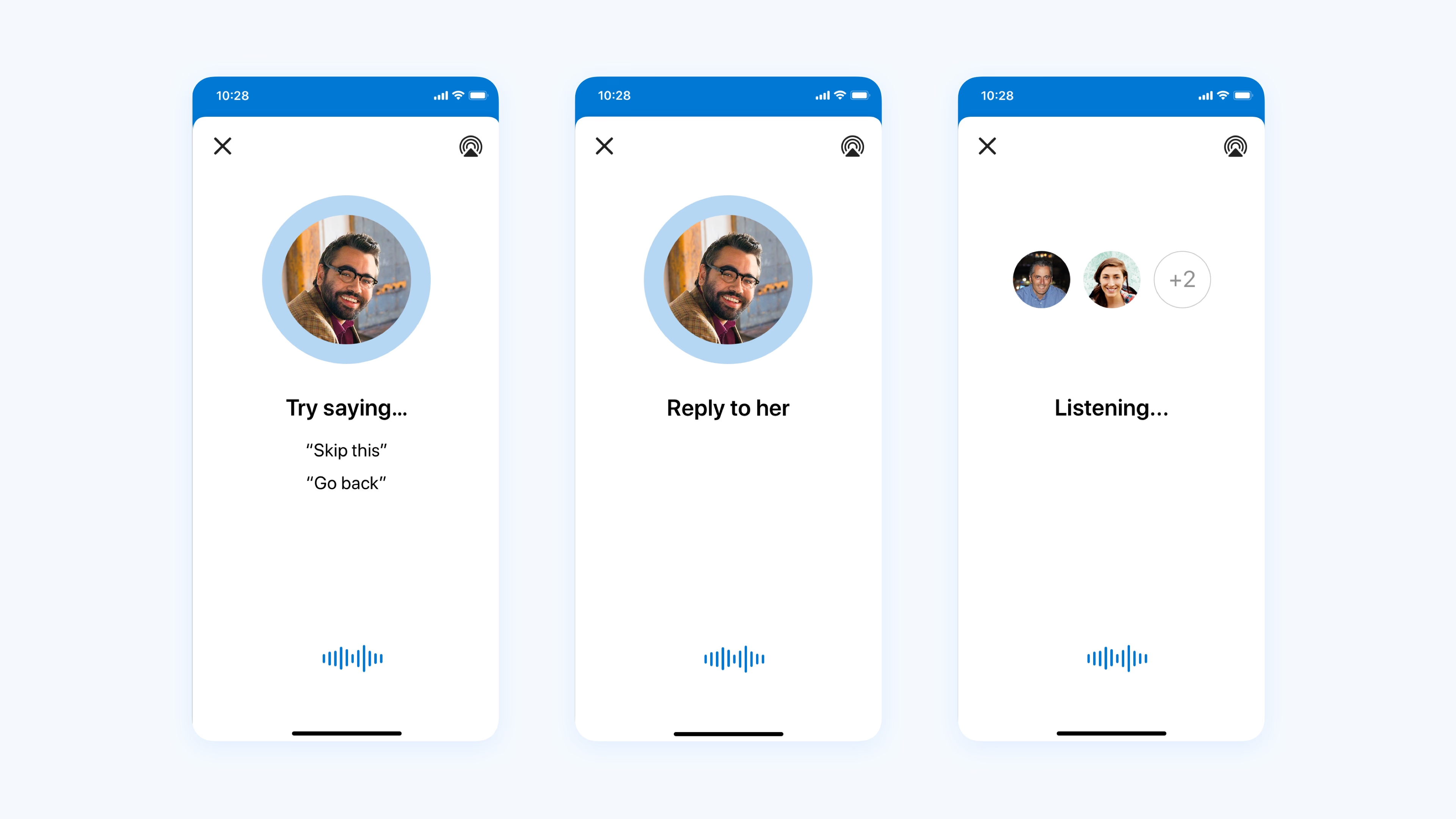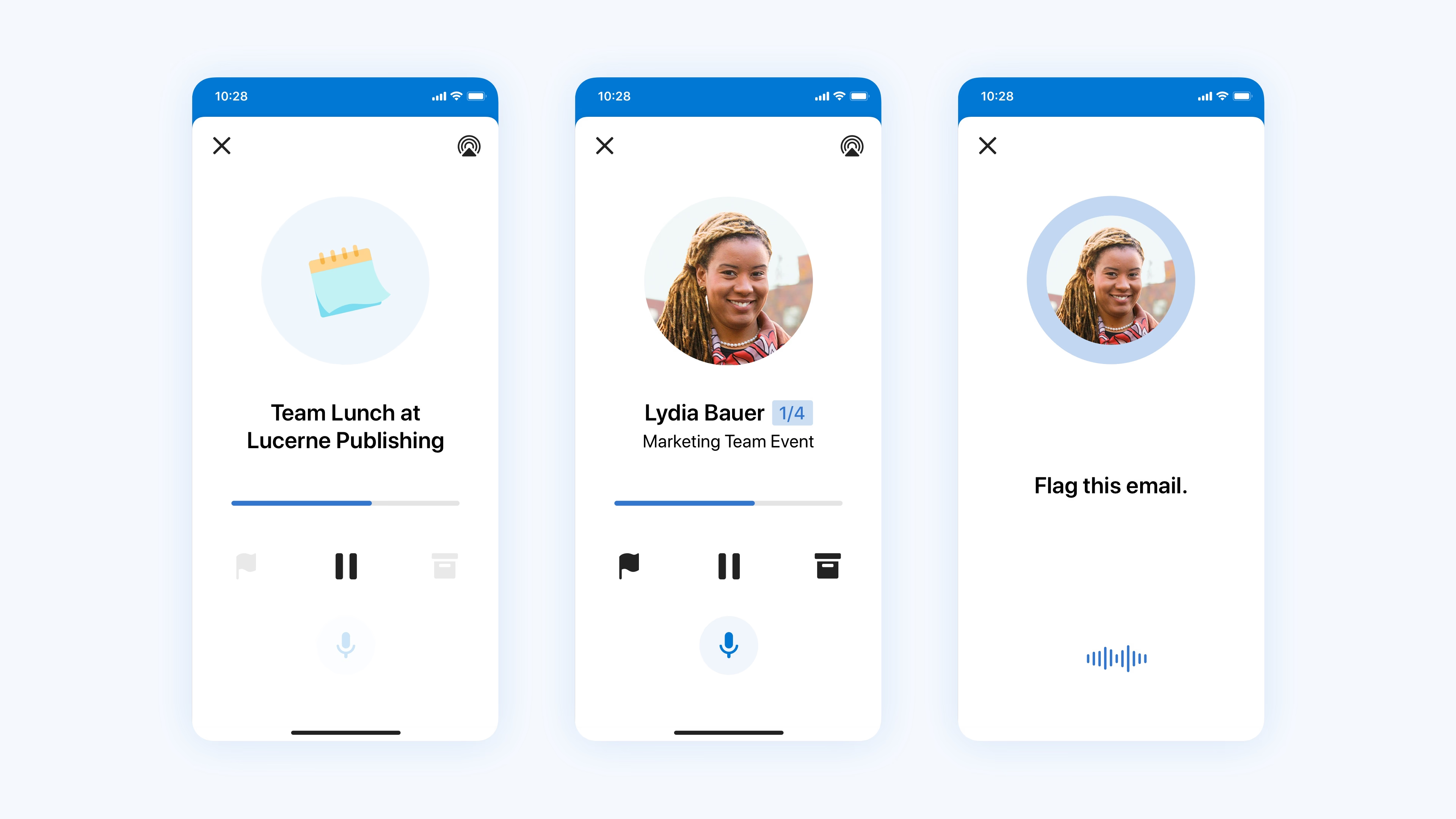 My Responsibilities: Spearheading the design effort to production, defining a scalable language for email consumption through voice, incorporating research, liaising with multiple teams to define the scope and driving the end-to-end design process.