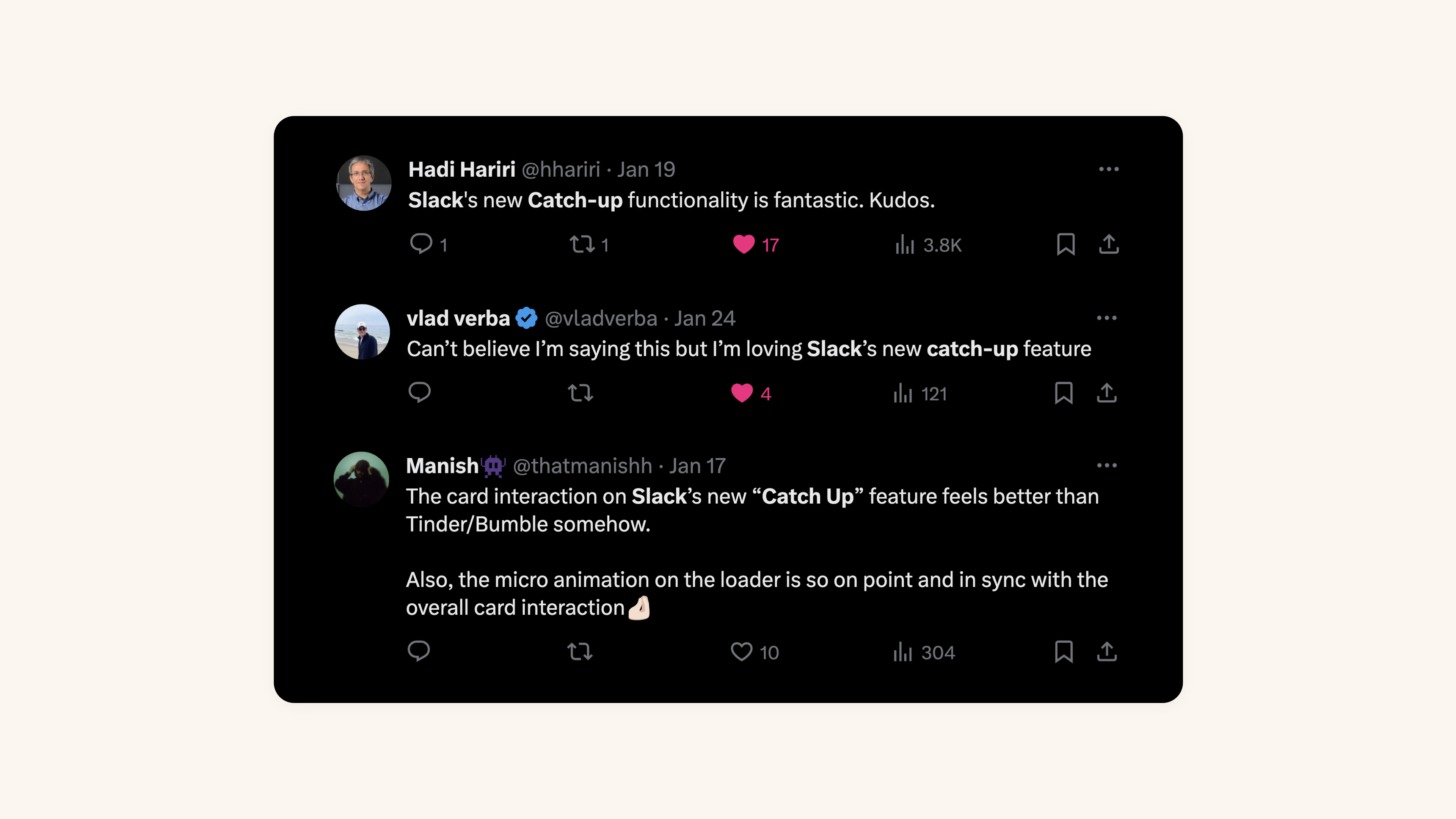 This idea started as a prototype at an internal hackathon and quickly became popular in our early dogfood releases. Personally, it completely transformed my mornings. Instead of feeling swamped with messages, I could quickly sort through them over breakfast. We also heard that many internal users were starting their day with more focus and intent.