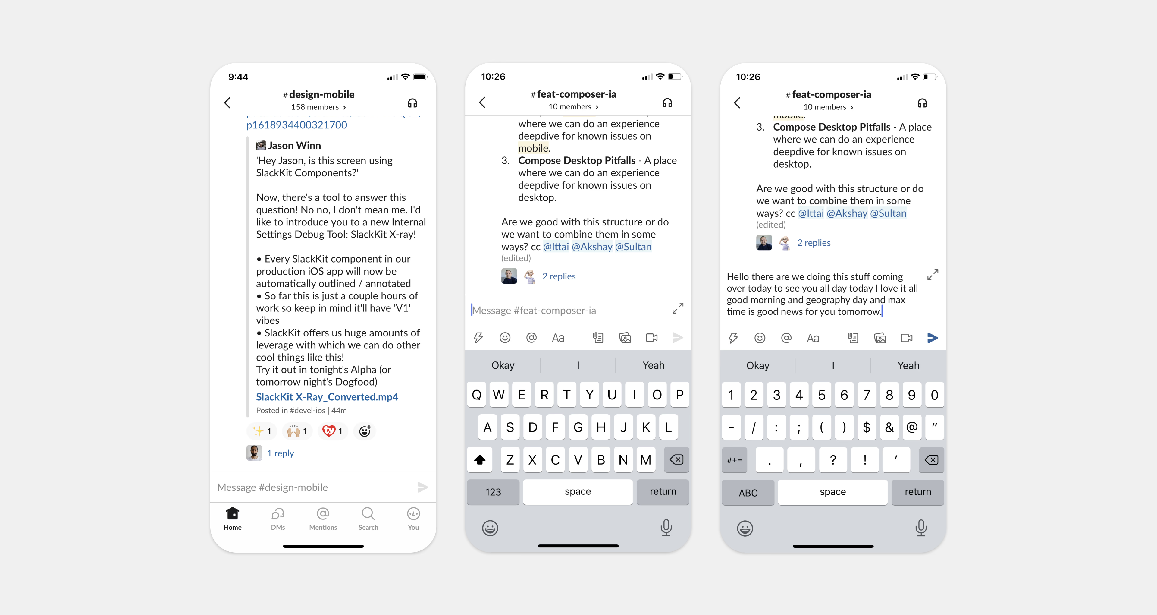 For almost 2 years, we built the mobile design system up from scratch. From building up representations in Figma to building the foundations of SlackKit on mobile.